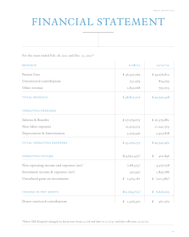 *Silver Hill Hospital changed its fiscal year from a 2/28 end date to a 12/31 end date effective 12/31/21.