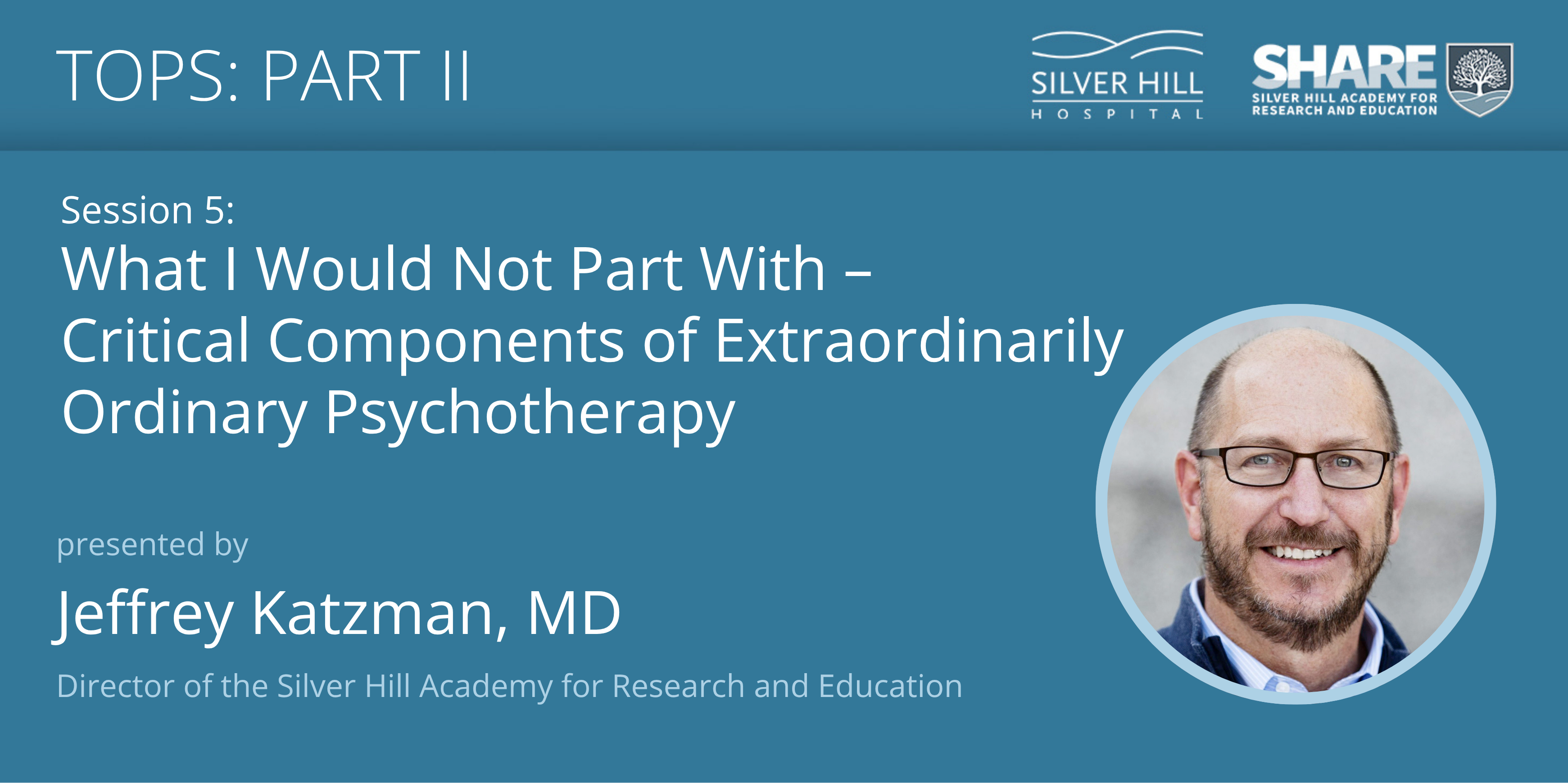 This special program presented by five unique individuals – each experienced in the field of psychotherapy – underscores critical common factors linked to positive outcomes. The five-session series involves the presentation of didactic information, in the format of personal experiences on both sides of the therapeutic relationship.